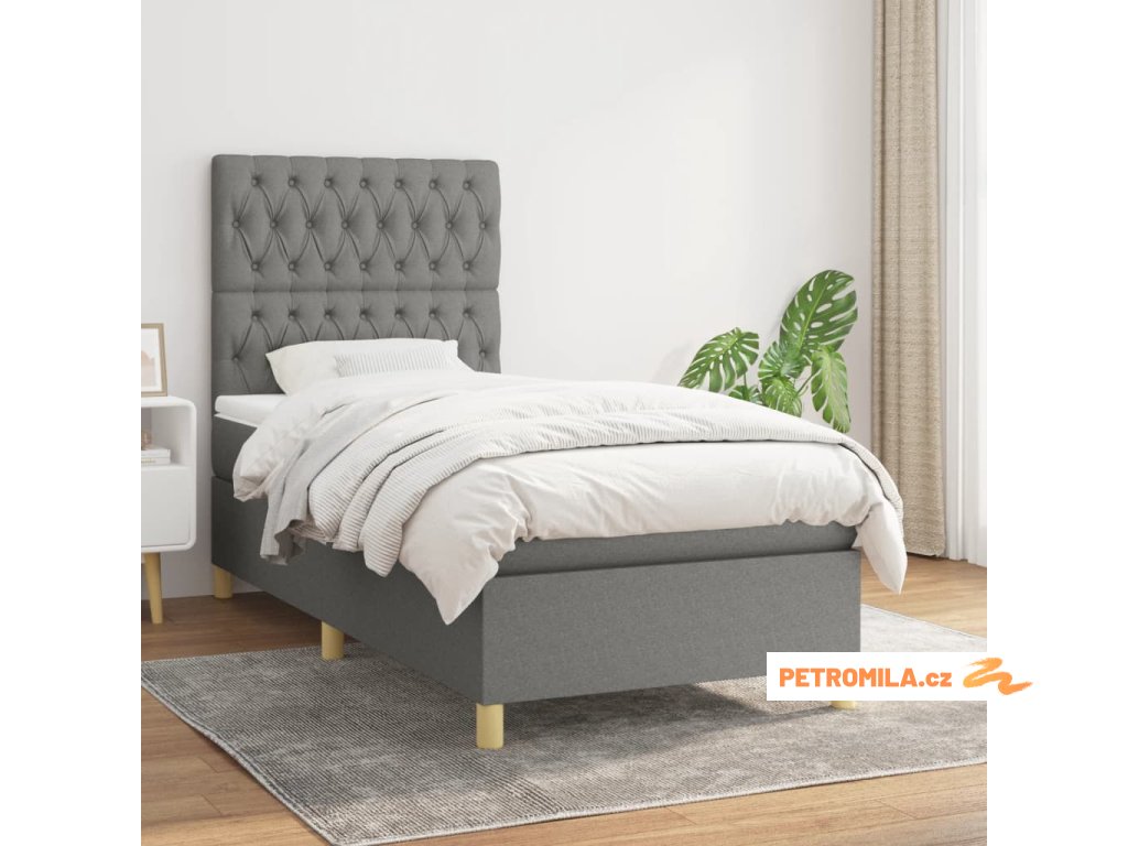 Box spring postel s matrací tmavě šedá 90x200 cm textil