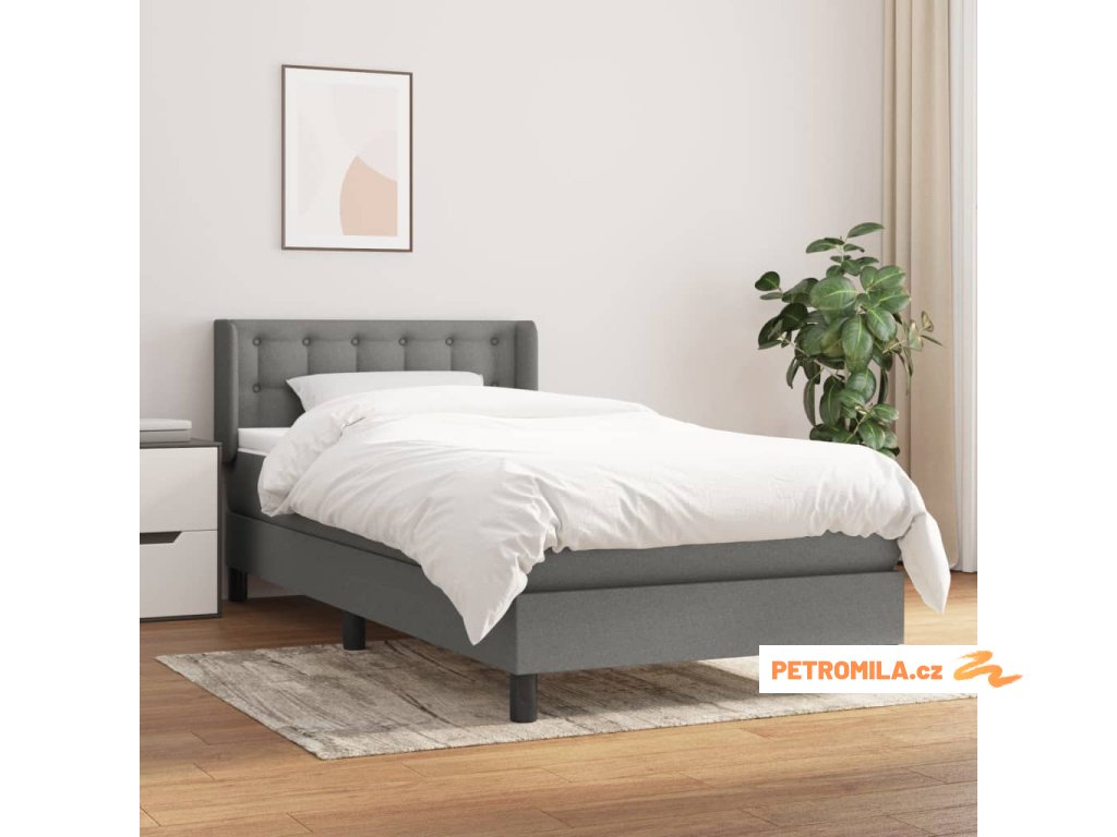 Box spring postel s matrací tmavě šedá 90x200 cm textil