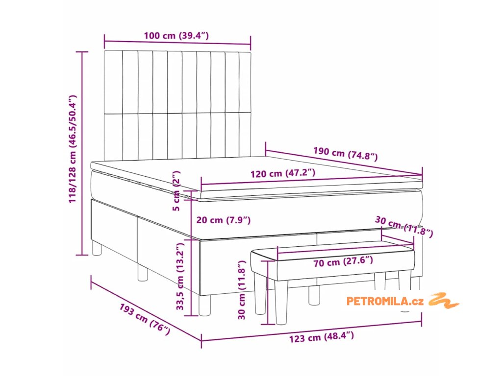 - Rozměry: 120 x 190 x 20 cm (Š x D x V)