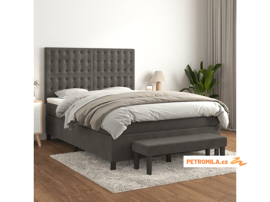 Box spring postel s matrací tmavě šedý 140 x 190 cm samet