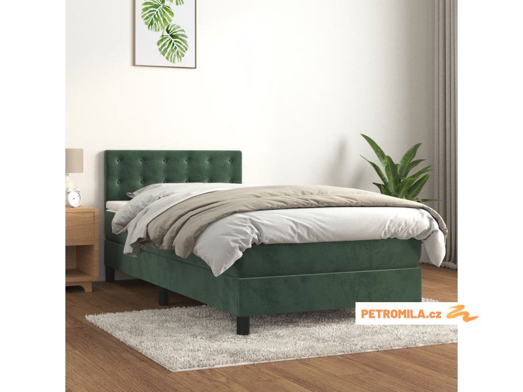 Box spring postel s matrací tmavě zelená 100x200 cm samet