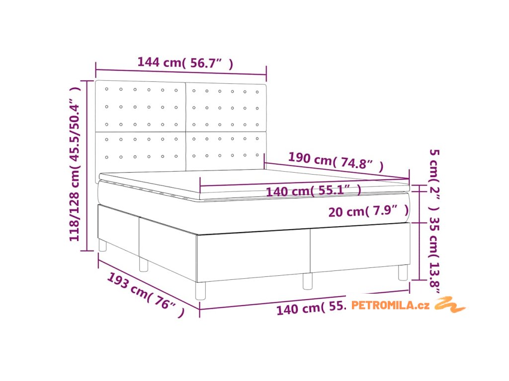 - Rozměry: 140 x 190 x 20 cm (Š x D x V)
