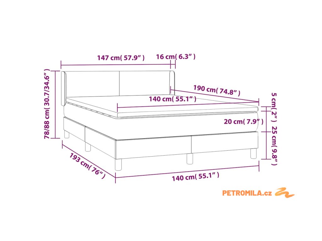 - Rozměry: 140 x 190 x 20 cm (Š x D x V)