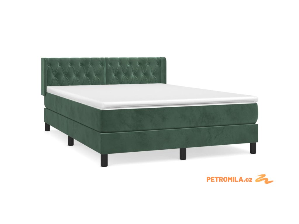 Box spring postel s matrací tmavě zelená 140x190 cm samet