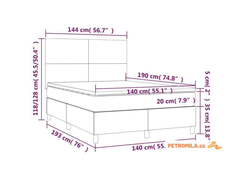 - Rozměry: 140 x 190 x 20 cm (Š x D x V)