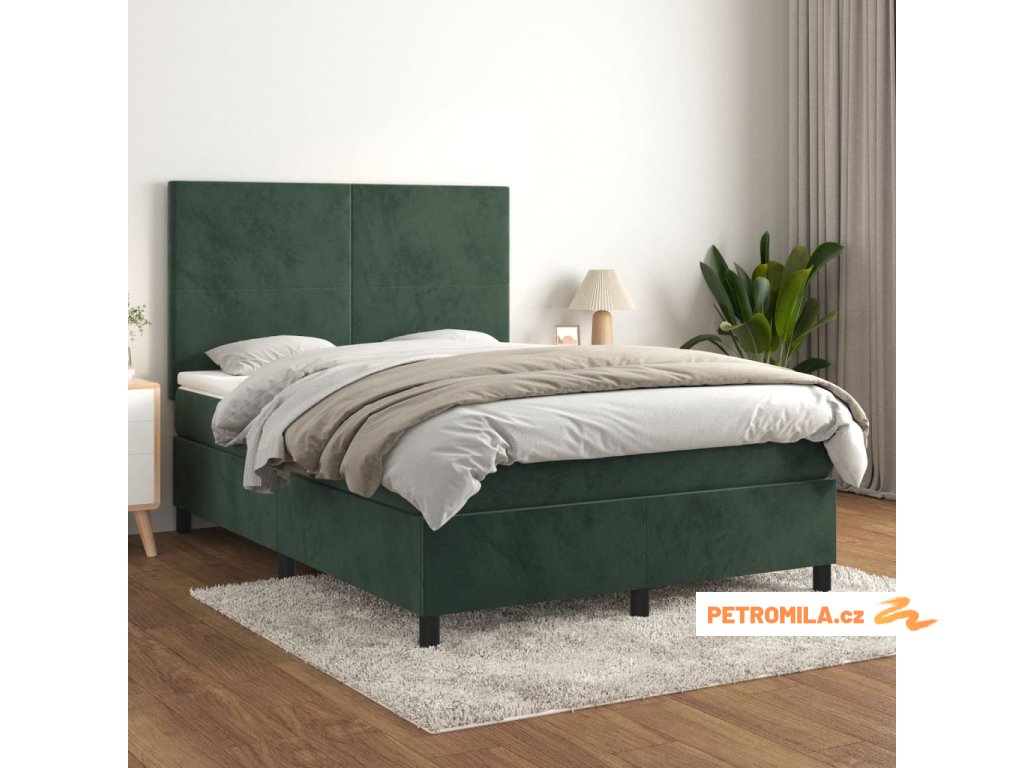 Box spring postel s matrací tmavě zelená 140x190 cm samet