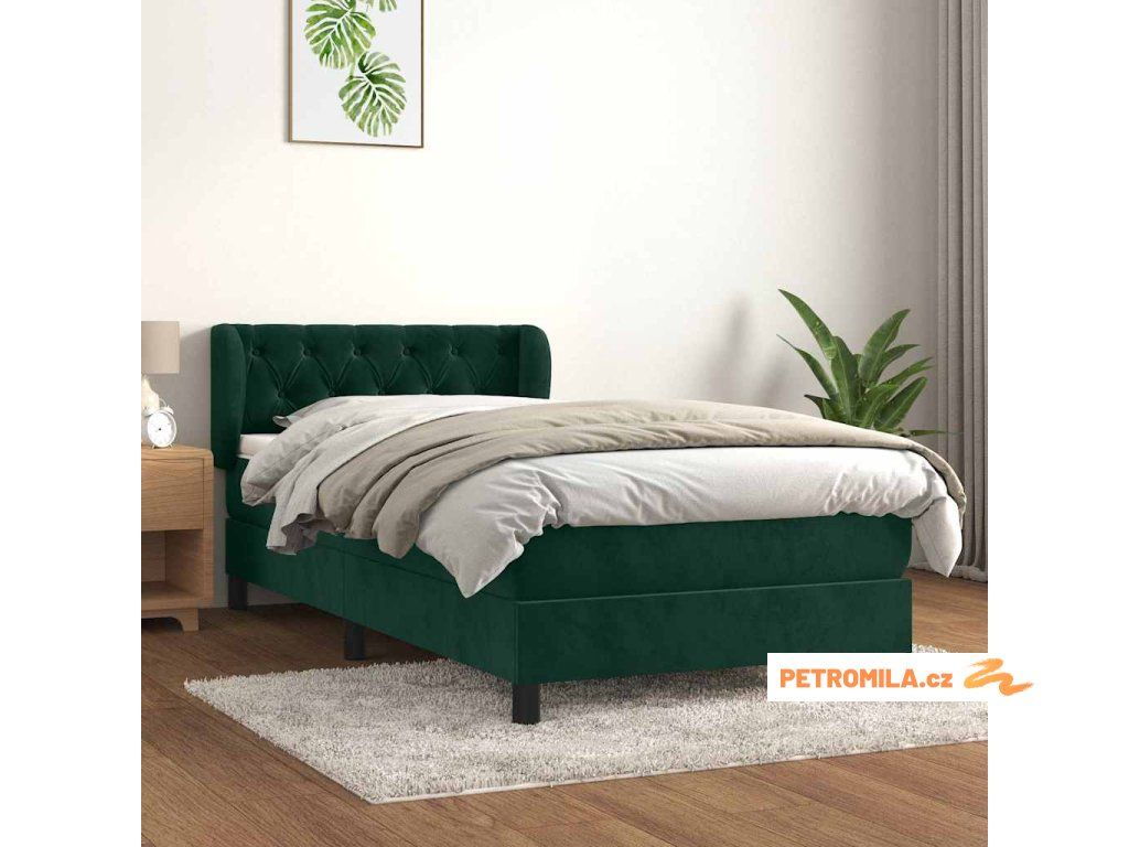 Box spring postel s matrací tmavě zelená 80 x 200 cm samet