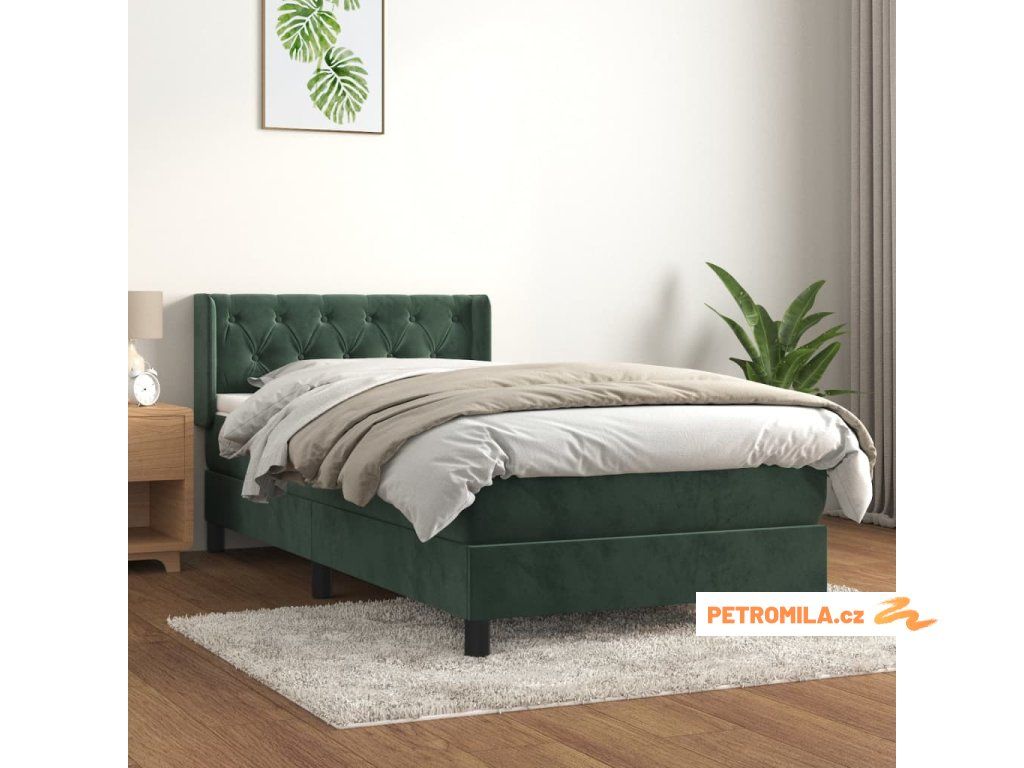 Box spring postel s matrací tmavě zelená 80 x 200 cm samet