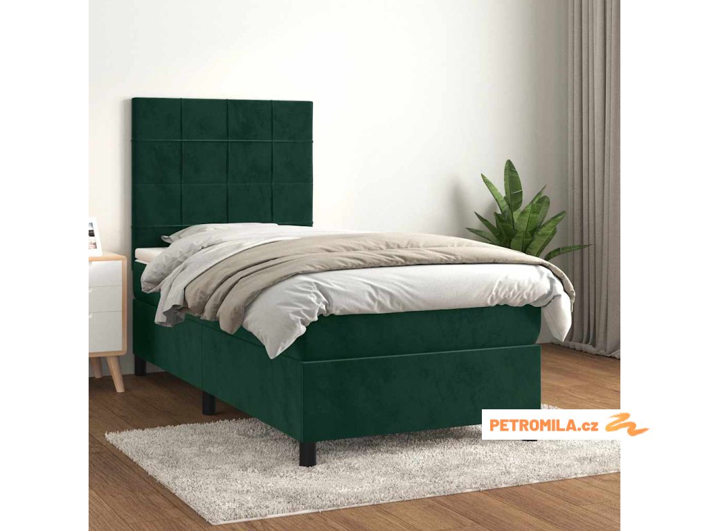 Box spring postel s matrací tmavě zelená 90x200 cm samet