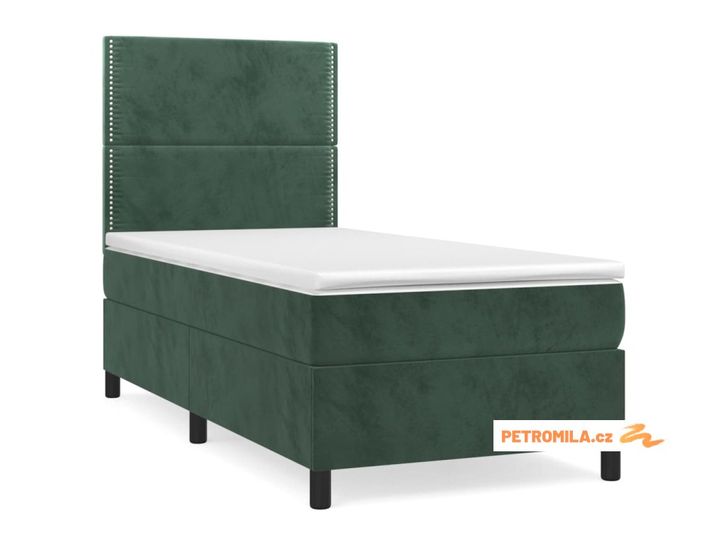 Box spring postel s matrací tmavě zelená 90x200 cm samet