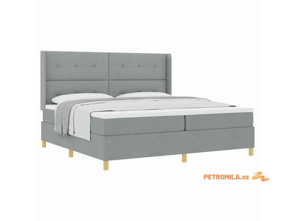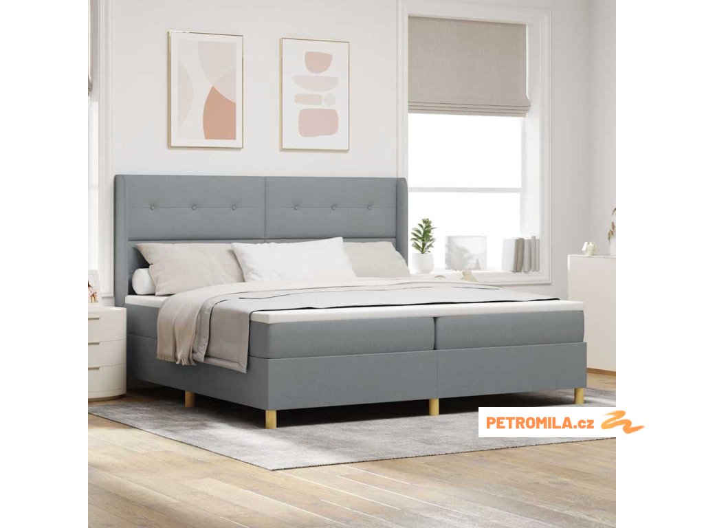 Boxspringová postel s matrací Světle šedá 200 x 200 cm textil