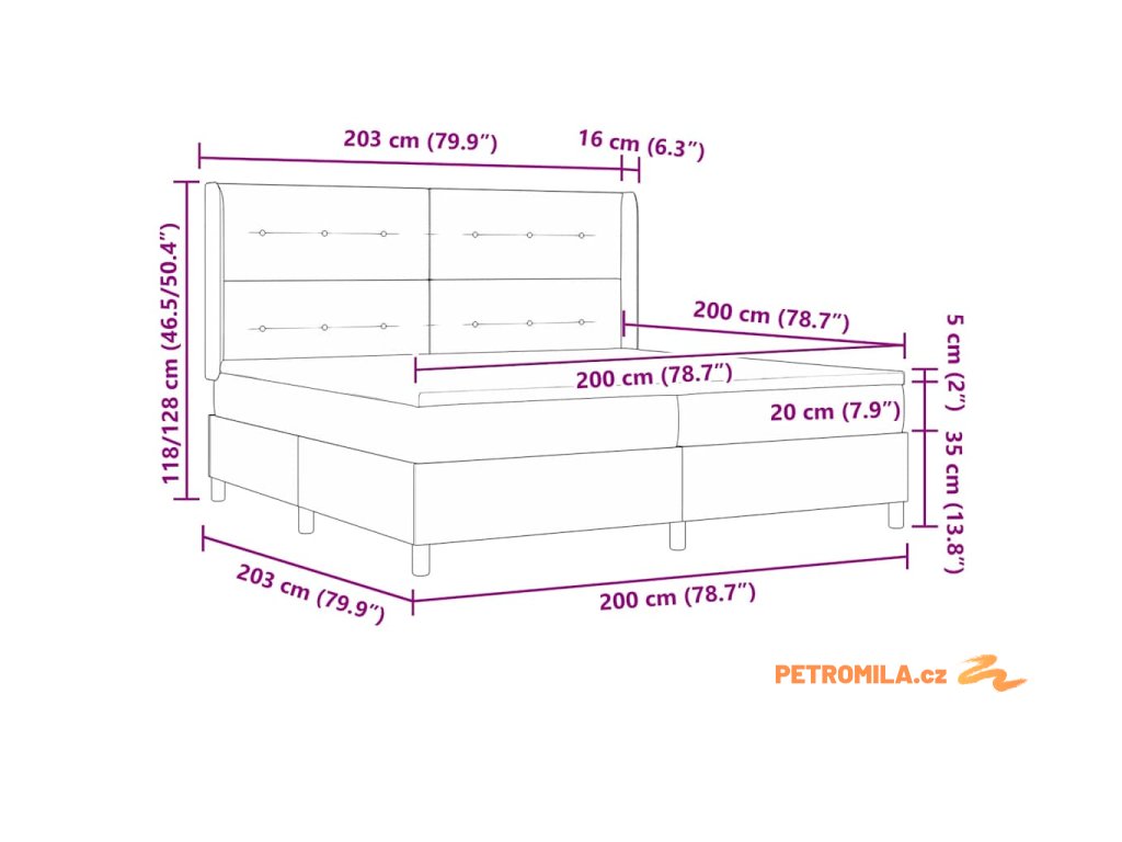 - Velikost matrace: Císařská postel (200 cm x 200 cm nebo 79" x 79")