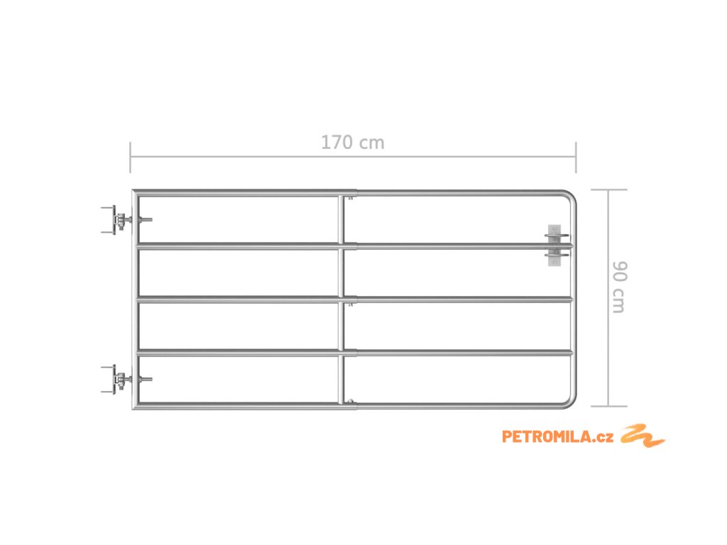 Brána na pastvinu ocelová 5 tyčí (95–170) x 90 cm stříbrná
