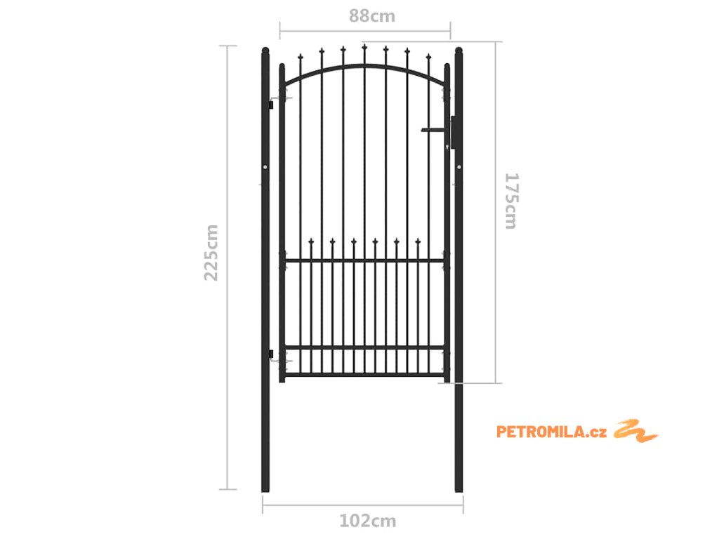 Brána s hroty Černá 100 x 175 cm Práškově lakovaná ocel