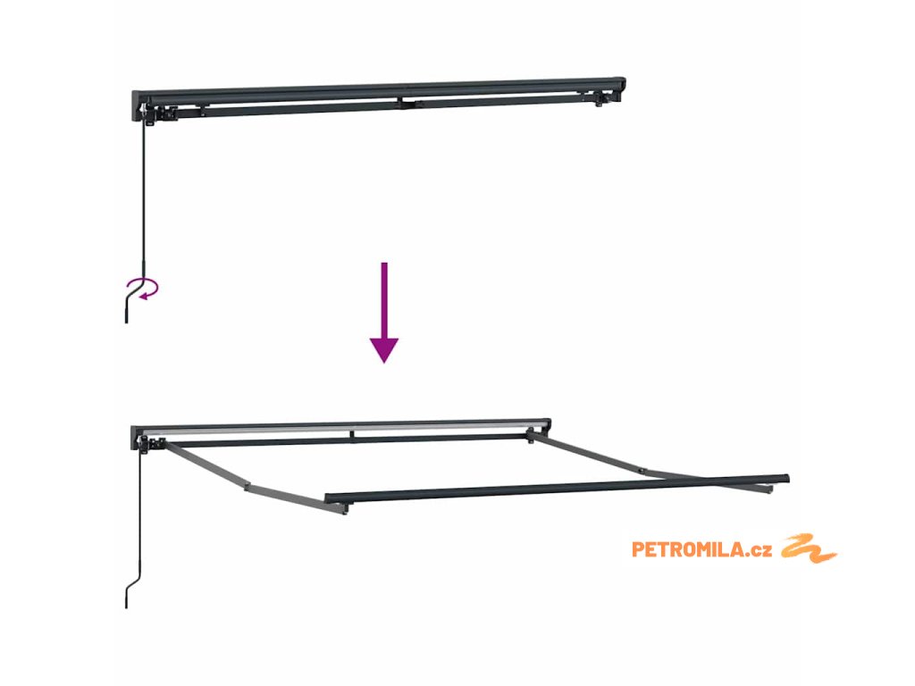 - Regulovatelný manuální mechanismus: Nastavte si stín jednoduše pomocí manuálního skládacího systému. Jednoduchý pohyb ruky vám umožní markýzu vztyčit nebo stáhnout podle potřeby a přizpůsobit atmosféru k měnícímu se světlu a počasí.