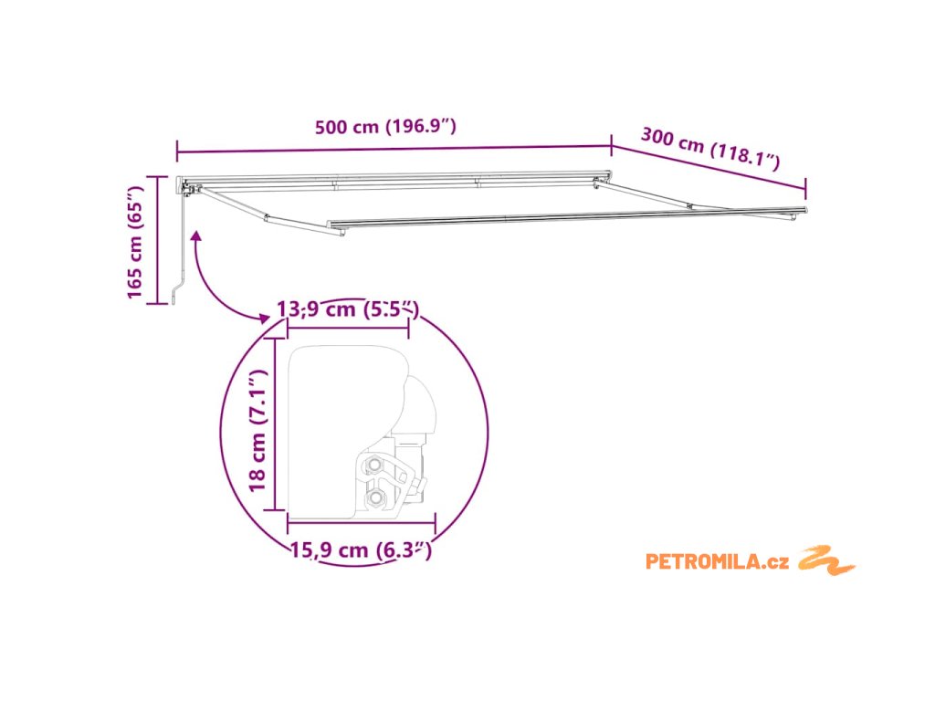 - Celkové rozměry: 500 x 300 cm (D x Š)