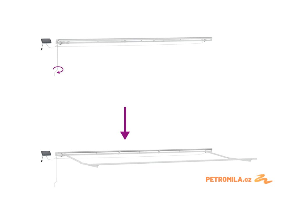 - Kompletní systém markýzy Tato zatahovací markýza obsahuje vše potřebné k použití. Ruční nastavovací mechanismus usnadňuje otevření nebo zavření clony podle potřeby. Navíc integrovaná LED osvětlení prodlouží možnost používání do večera, což z této markýzy činí skvělý doplněk do jakéhokoli venkovního prostoru.