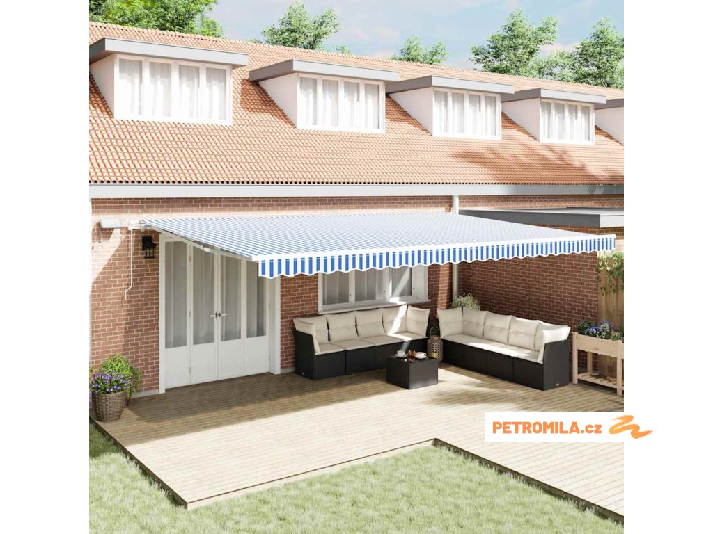 Tahle moderní zatahovací sluneční clona je navržena tak, aby vám zlepšila venkovní zážitky během slunečných dní. S čistými liniemi a minimálními zdobením vypadá stylově a funkčně, ideálně se hodí do moderních zahrad a na terasy. S hladkým pruhovaným designem v modré a bílé je to příjemný doplněk, který kombinuje eleganci a praktičnost. Tato markýza se hodí na letní akce, chrání váš prostor před silným UV zářením a zároveň dodává šarm vašemu venkovnímu prostředí.