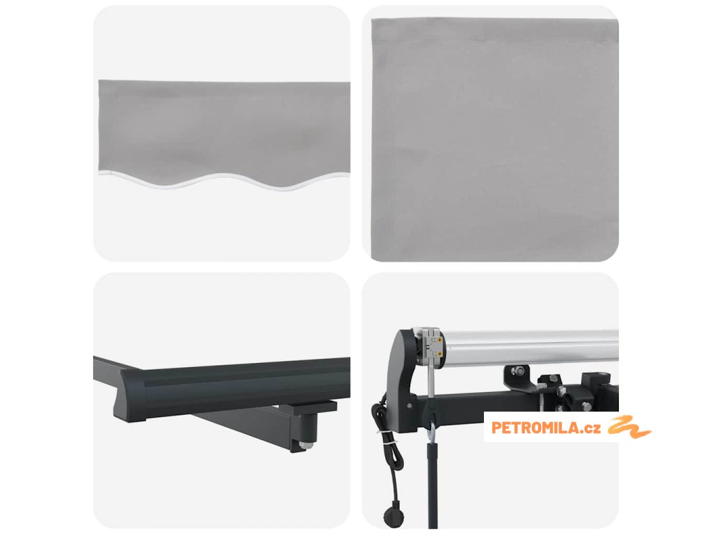 - Snadná údržba: Udržovat markýzu v top stavu je jednoduché - stačí setřít nečistoty, když je suchá. Použij vodotěsný sprej před silným deštěm, aby si udržela  svou sílu a styl, takže o ní budeš pečovat snadno. - Barva: Světle šedá