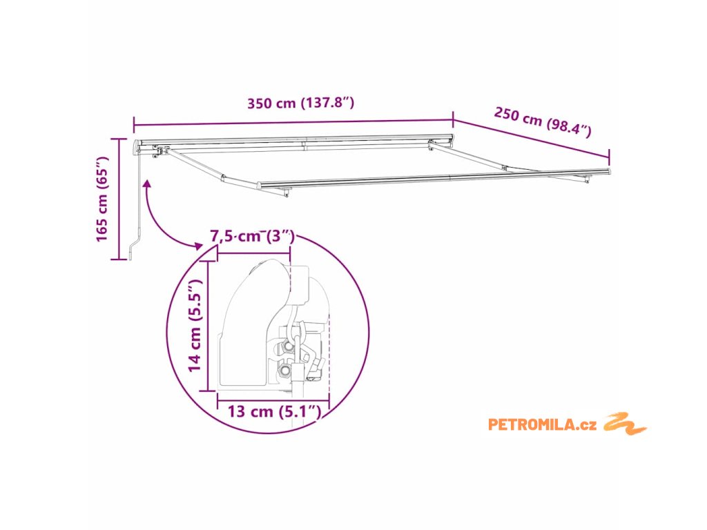 - Celkové rozměry: 350 x 250 cm (D x Š)