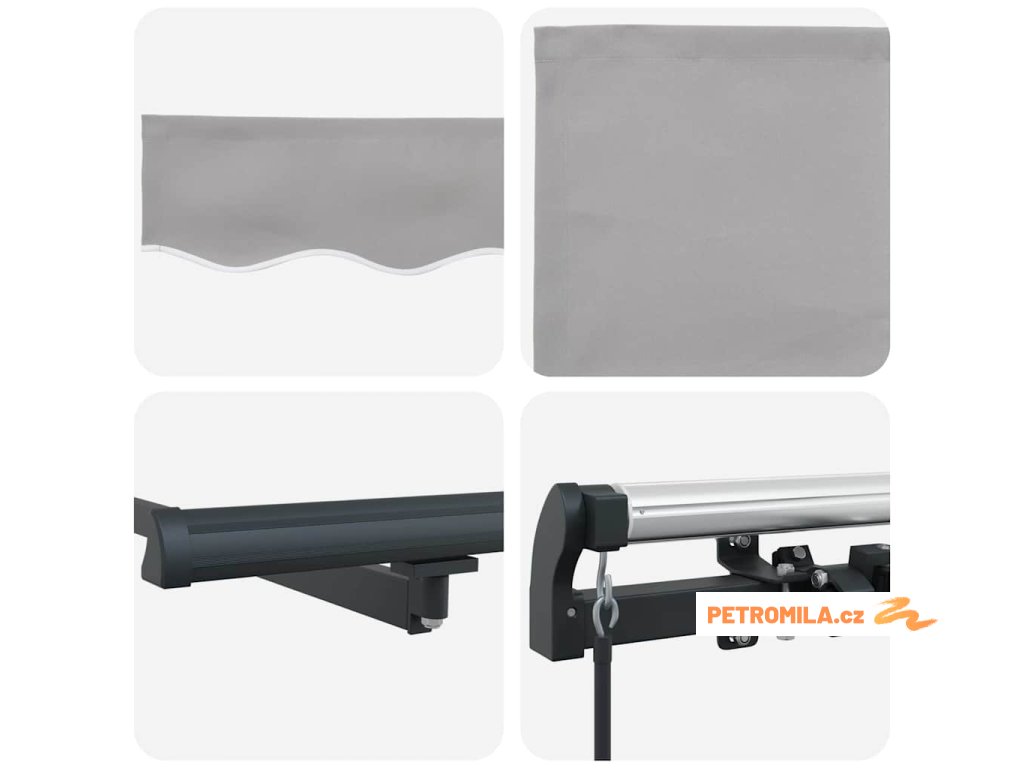 - Manuální nastavovací mechanismus Tato markýza má jednoduchý ruční zatahovací systém. Pomocí jednoduché kliky může uživatel odvalit nebo zatáhnout markýzu podle potřeby, aby zajistil různou míru stínu, snadno se přizpůsobující měnícím se povětrnostním podmínkám.