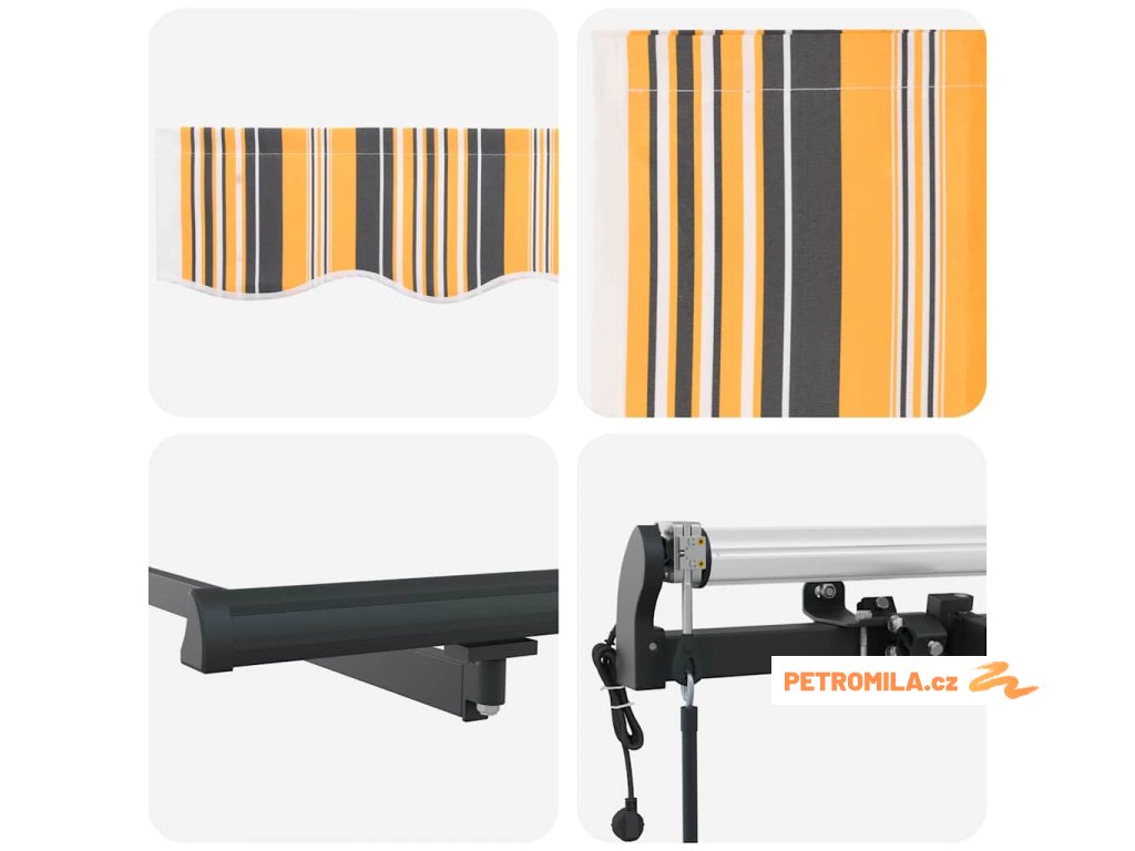- Snadná údržba: Udržovat markýzu v top stavu je jednoduché - stačí setřít nečistoty, když je suchá. Použij vodotěsný sprej před silným deštěm, aby si udržela  svou sílu a styl, takže o ní budeš pečovat snadno. - Barva: Vícebarevný