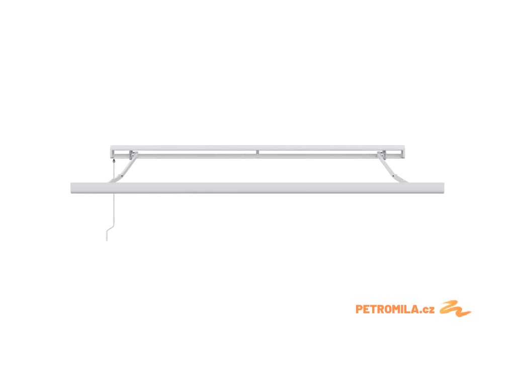 Před montáží a používání výrobku si přečtěte návod k obsluze. Tento návod si uschovejte pro budoucí použití. Tento výrobek je určen pouze pro venkovní a domácí použití jako ochrana před sluncem nebo dekorace. Nikdy jej nepoužívejte k jiným účelům ani výrobek neupravujte. Nepoužívejte jej na místech, kde dochází k vibracím a impulzům nebo jsou vystaveny vysokým teplotám, například na stěnách v blízkosti pecí. Při montáži a seřizování markýzy vždy používejte vhodné osobní ochranné pomůcky. Při práci ve velkých výškách hrozí nebezpečí pádu, používejte vhodnou ochranu proti pádu. Při montáži buďte opatrní, může hrozit nebezpečí rozdrcení a useknutí. NEODSTRAŇUJTE bezpečnostní fólie.Tyto fólie lze odstranit až po dokončení všech montážních kroků, po upevnění všech šroubů a po připevnění výrobku ke stěně. Při předčasném odstranění fólií může dojít k vážnému zranění. Tento výrobek a jeho upevňovací díly jsou vhodné pouze pro instalaci na hladkou cementovou zeď nebo stabilní neomítnuté zdivo. Pokud stěna/zdivo vykazuje trhliny, je třeba se poradit s odborníkem. Pokud má vaše budova vnější plášť (např. izolaci, dvojitou cihlovou stěnu nebo cihlový obklad), měl by instalaci provést odborník. Nikdy neinstalujte na vyvýšených a větrných místech, protože by sluenční clona mohla spadnout a zranit osoby. Markýzu neinstalujte, pokud jsou některé díly poškozené nebo zcela chybí. Vnější žaluzie se musí stáhnout v případě, že je rychlost větru vyšší než 28 km/h. Před otevřením markýzy se ujistěte, že jsou všechny držáky nemontovány do stěnových čepů a všechny šrouby jsou řádně dotaženy. VŽDY markýzu ZAVÍREJTE při silném nebo prudkém větru, dešti a v době, kdy ji nepoužíváte. V opačném případě může dojít ke zranění osob a/nebo poškození majetku. Také výsuvná ramena jsou pod vysokým napětím a mohou způsobit vážné poškození nebo zranění. Děti by měly být pod dohledem, aby se zajistilo, že si s přístrojem nebudou hrát. Nepoužívejte jej, pokud je nutná oprava nebo seřízení. Nepoužívejte markýzu, pokud se v v její blízkosti provádí údržba, například mytí oken. Provoz v mrazivých podmínkách může markýzu poškodit. Nepokládejte na rám těžké věci, protože by mohly spadnout způsobit poškození. Příliš pevné nebo příliš volné upevňovací prvky by mohly způsobit poškození výrobku nebo představovat nebezpečí pro osoby. Varování: Tkanina by neměla být během provozu potopena, jinak se na ní bude hromadit voda. Tkaninu nerozbalujte a neperte. Pokud potřebujete látku vyměnit, obraťte se s žádostí o pomoc na odborníka. Při ovládání ručního spouštění se zataženou vnější roletou buďte opatrní, protože může dojít k jejímu rychlému pádu v důsledku slabých nebo poškozených proužin.Nebezpečí! Silná pružina. NEODSTRAŇUJTE toto lano, dokud nedokončíte všechny kroky montáže, všechny šrouby nejsou utažené a předmět není připevněn ke zdi! Varování! Při povolování ramen dbejte opatrnosti, neboť jsou pod mechanickým tlakem! Náhlé uvolnění skládacího ramene může způsobit zranění. Varování: Před použitím výrobku si pečlivě přečtěte návod k obsluze. Varování: Používání při teplotách pod bodem mrazu může produkt poškodit. Externí použití v budovách a jiných stavbách.