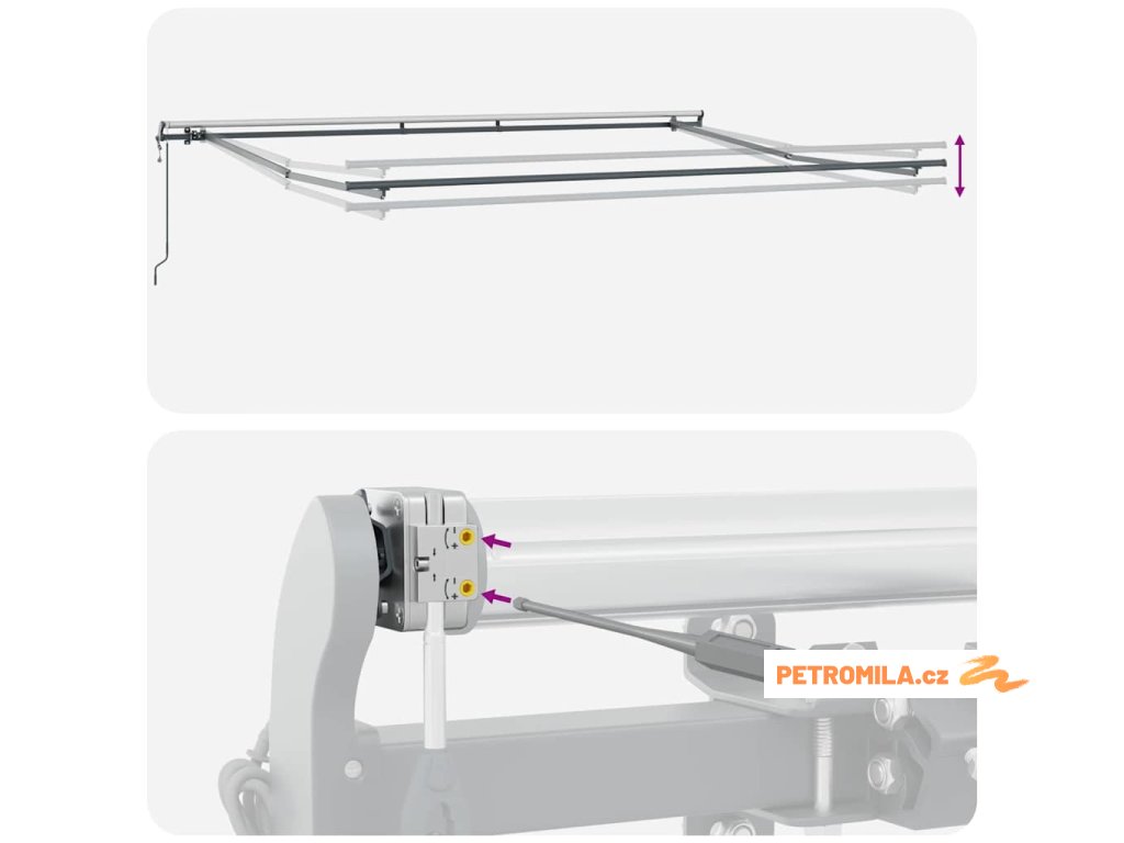 - Základní pokyny pro údržbu: Sestavení vyžaduje dva lidi a šroubovák. Pravidelně kontrolujte markýzu a čistěte tkaninu mírným mýdlem a vodou. Správné čištění prodlouží její životnost a zachová atraktivní vzhled.
