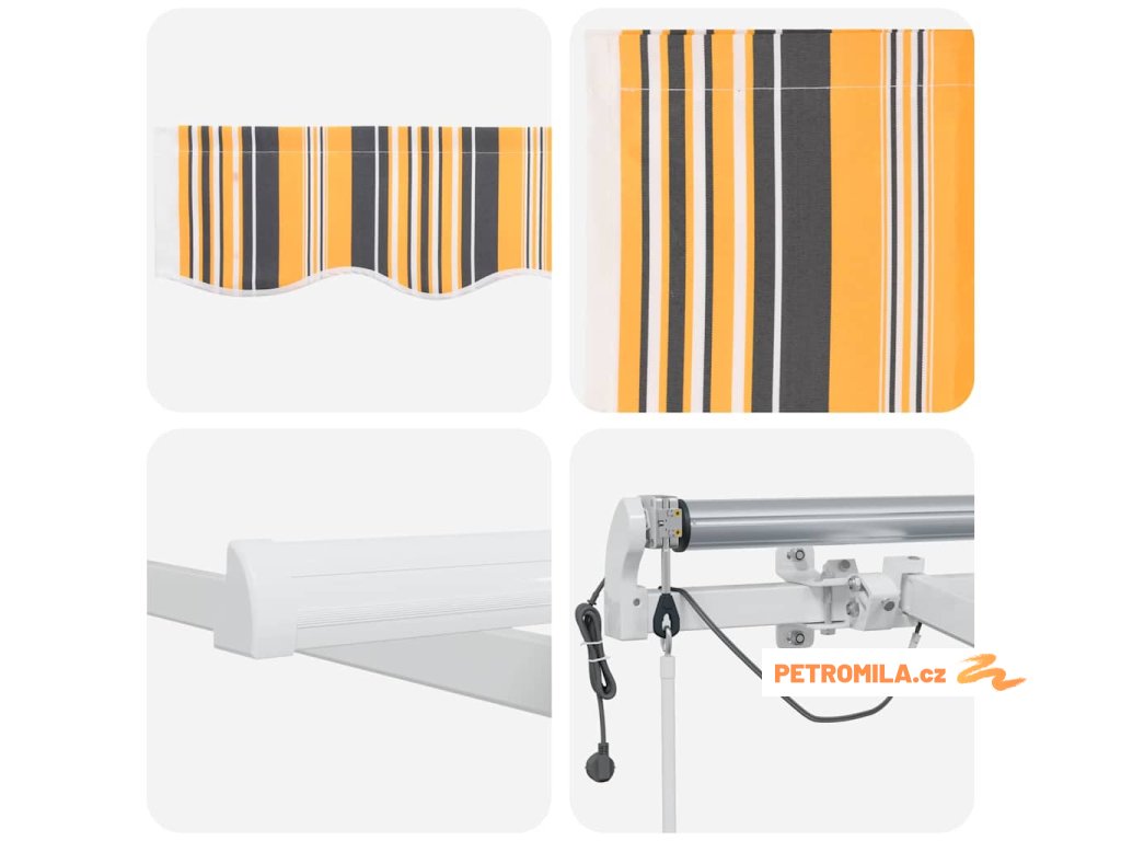 - Zabudované LED světla: Praktické LED pásky připevněné k markýze poskytují skvělé osvětlení pro večerní setkání a vytvářejí příjemnou atmosféru. Tato světla zvyšují funkčnost markýzy a obohacují váš venkovní zážitek v noci.