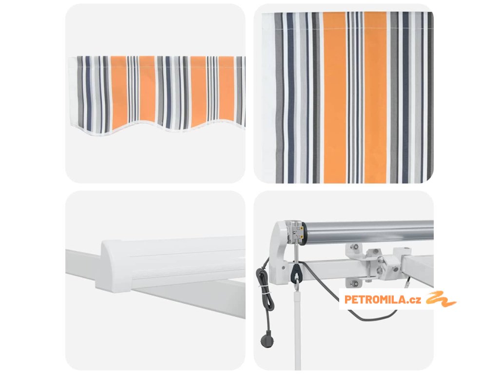 - Zabudované LED světla: Praktické LED pásky připevněné k markýze poskytují skvělé osvětlení pro večerní setkání a vytvářejí příjemnou atmosféru. Tato světla zvyšují funkčnost markýzy a obohacují váš venkovní zážitek v noci.