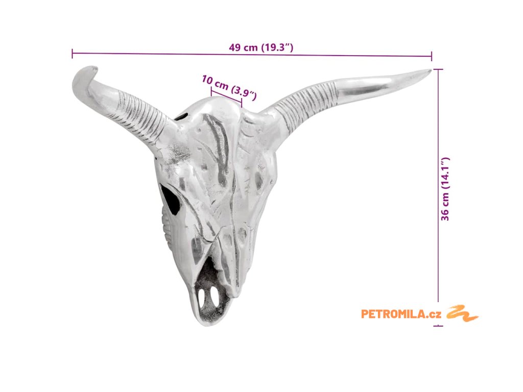 Býčí lebka Stříbrná 49 x 10 x 36 cm Hliník