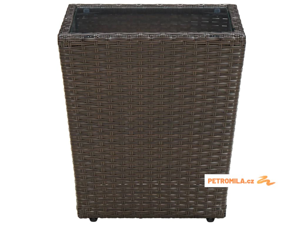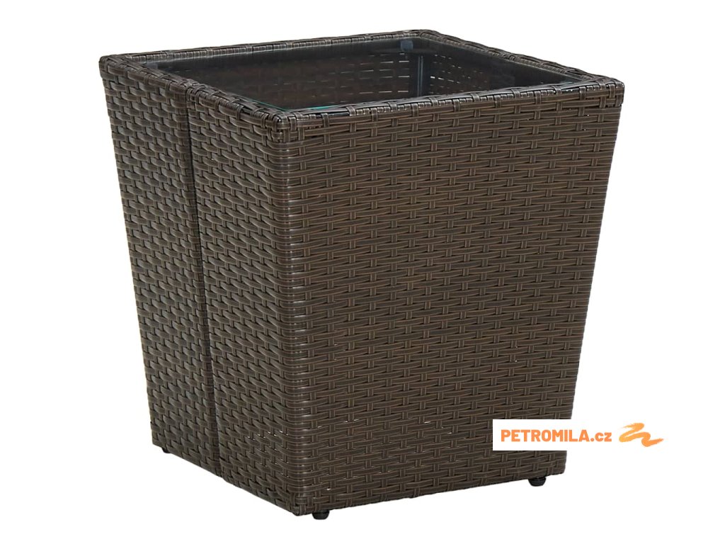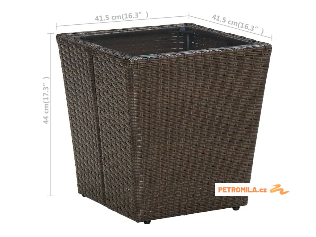 Čajový stolek hnědý 41,5x41,5x44 cm polyratan a tvrzené sklo