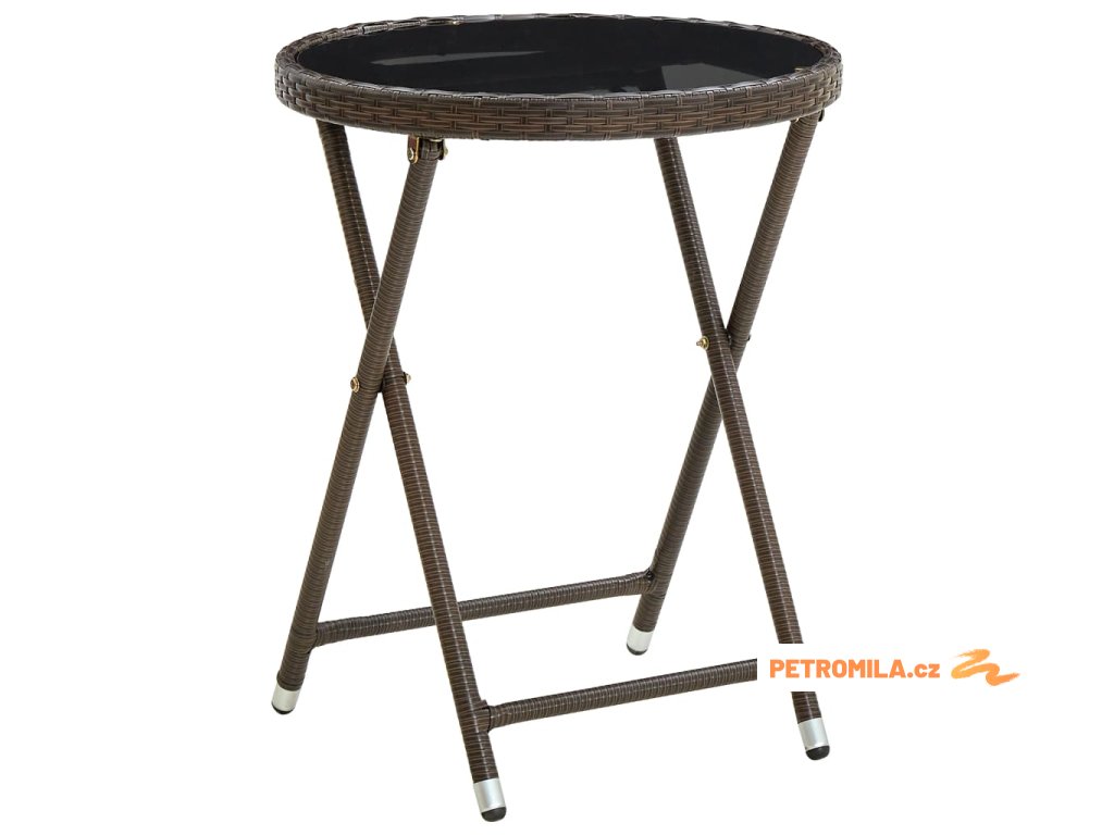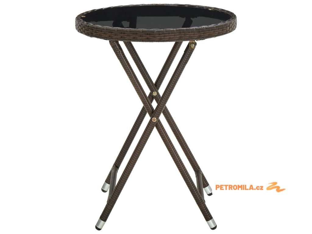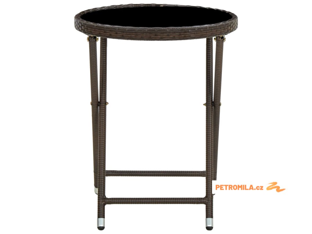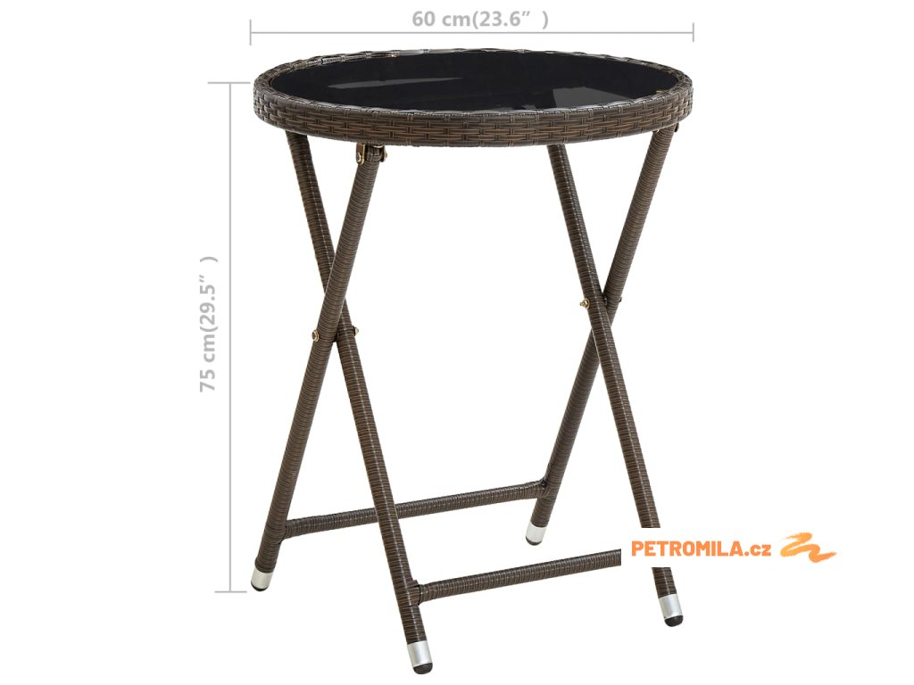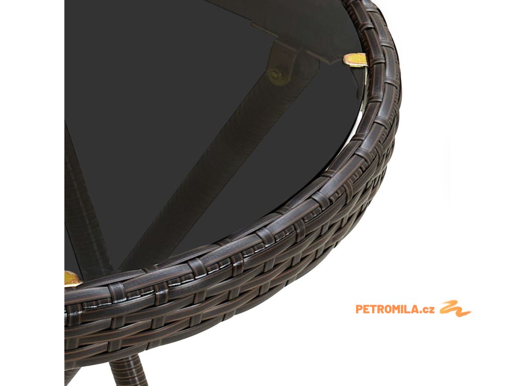 Čajový stolek hnědý 60 cm polyratan a tvrzené sklo