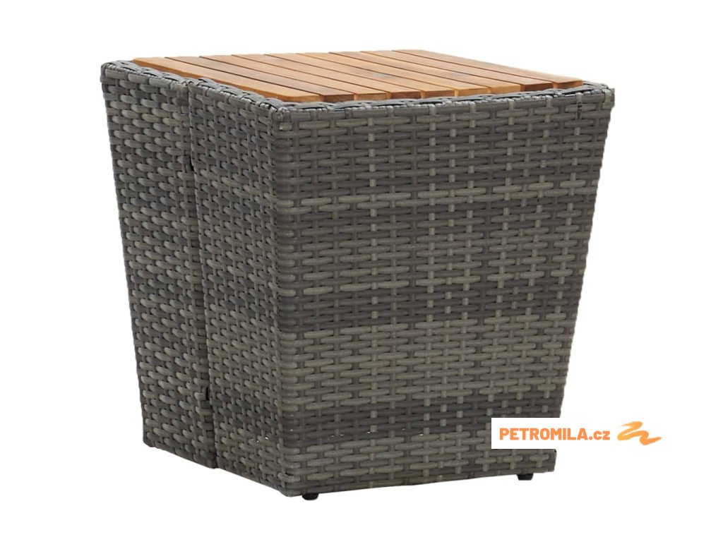 Čajový stolek šedý 41,5x41,5x43 cm polyratan a masivní akácie