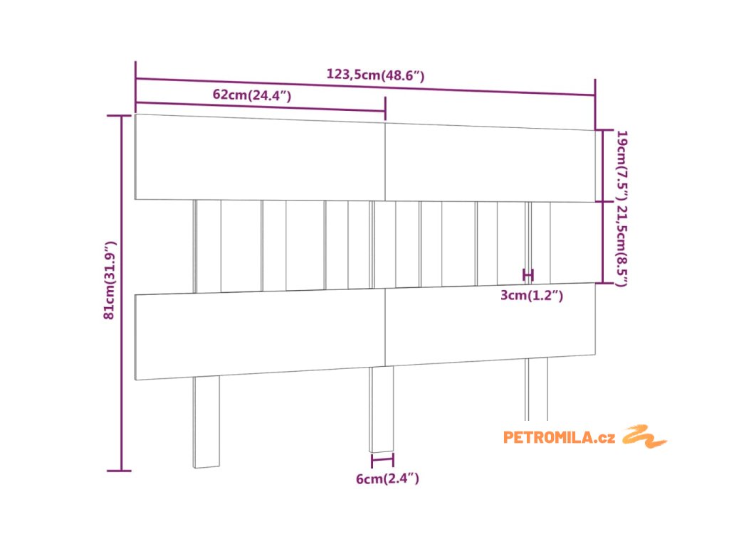 Čelo postele 123,5 x 3 x 81 cm masivní borovice