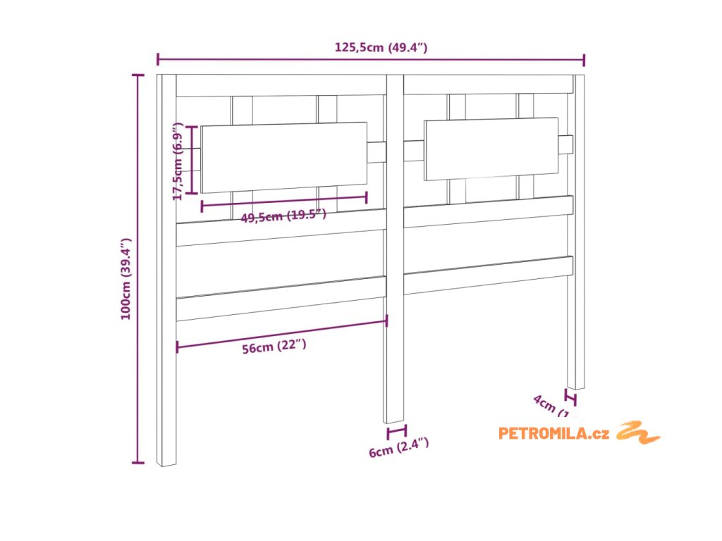Čelo postele 125,5 x 4 x 100 cm masivní borovice