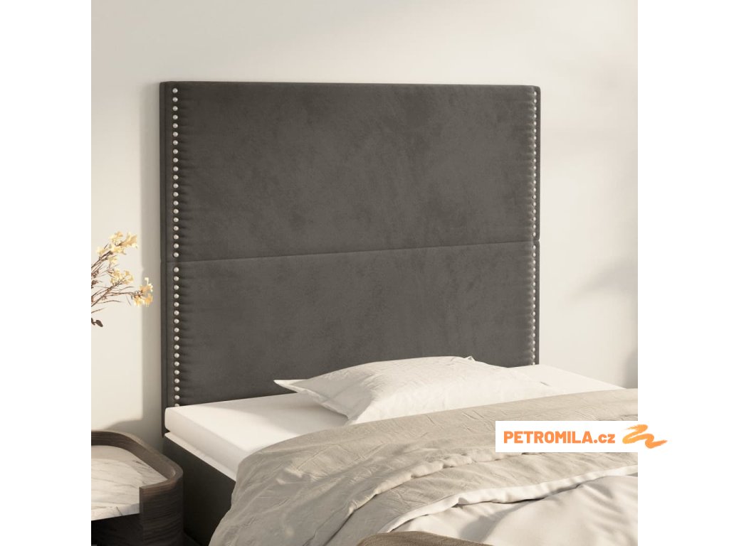 Čelo postele 2 ks tmavě šed 90x5x78/88 cm samet