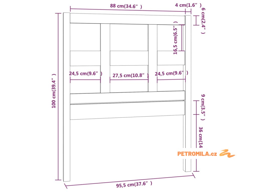 Čelo postele 95,5 x 4 x 100 cm masivní borovice