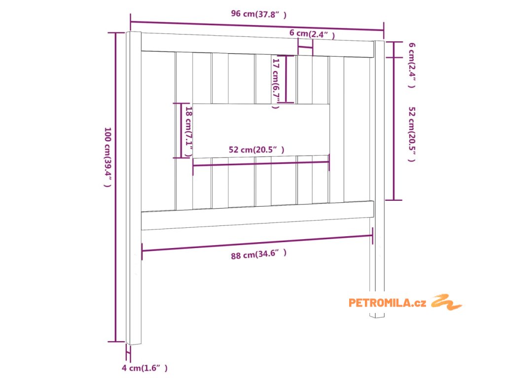 Čelo postele 96 x 4 x 100 cm masivní borovice