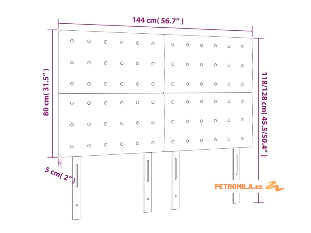 - Celkové rozměry: 144 x 5 x 118/128 cm (Š x H x V)