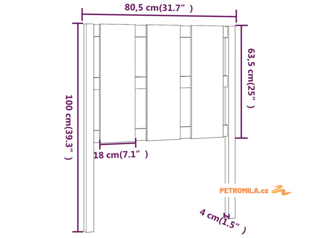 Čelo postele černé 80,5 x 4 x 100 cm masivní borovice