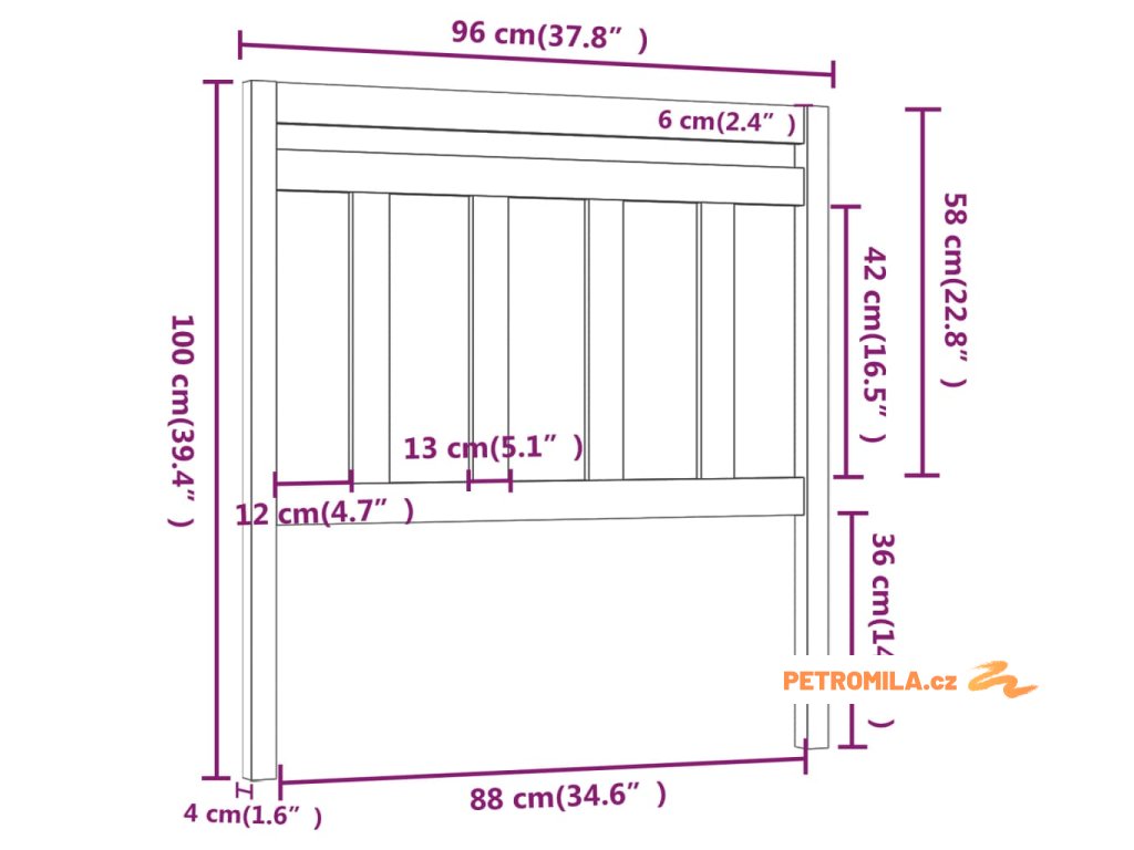 Čelo postele černé 96 x 4 x 100 cm masivní borovice