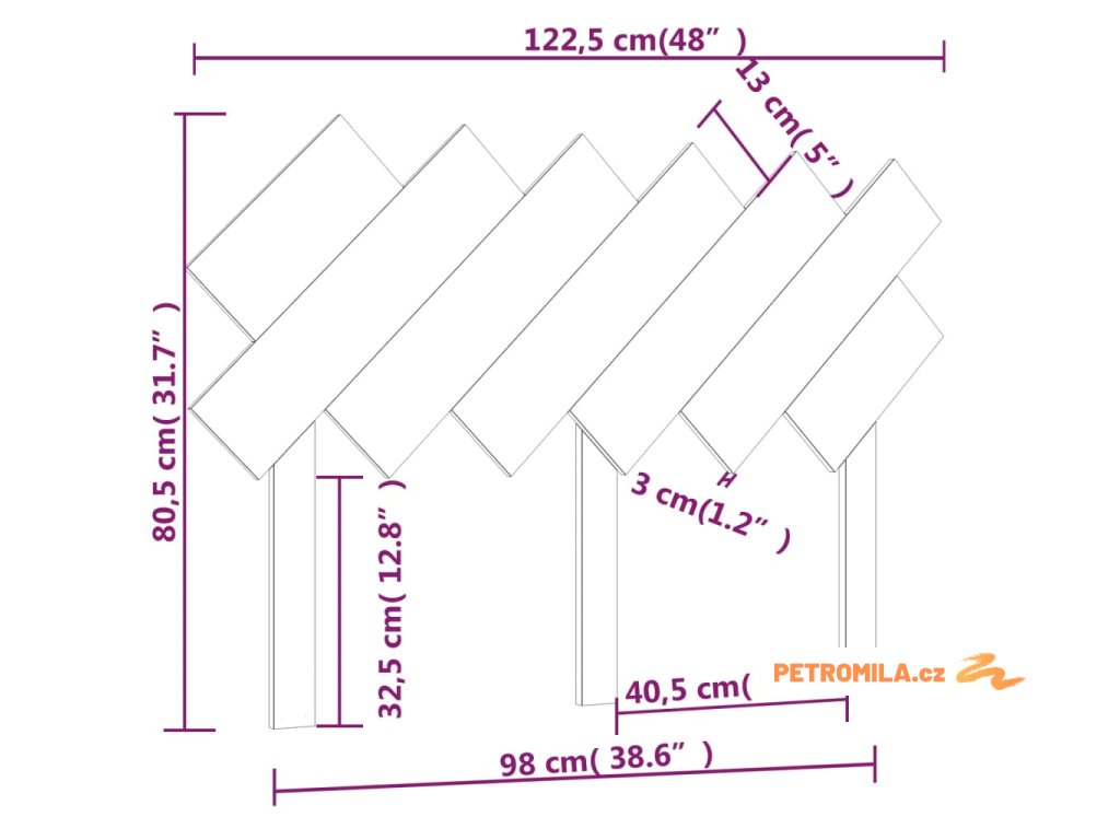 Čelo postele medově hnědé 122,5 x 3 x 80,5 cm masivní borovice