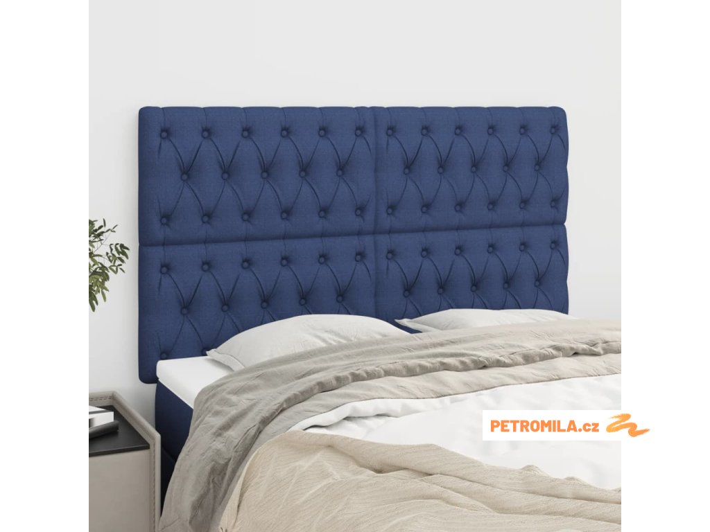 Čelo postele modré 160x7x118/128 cm látkové