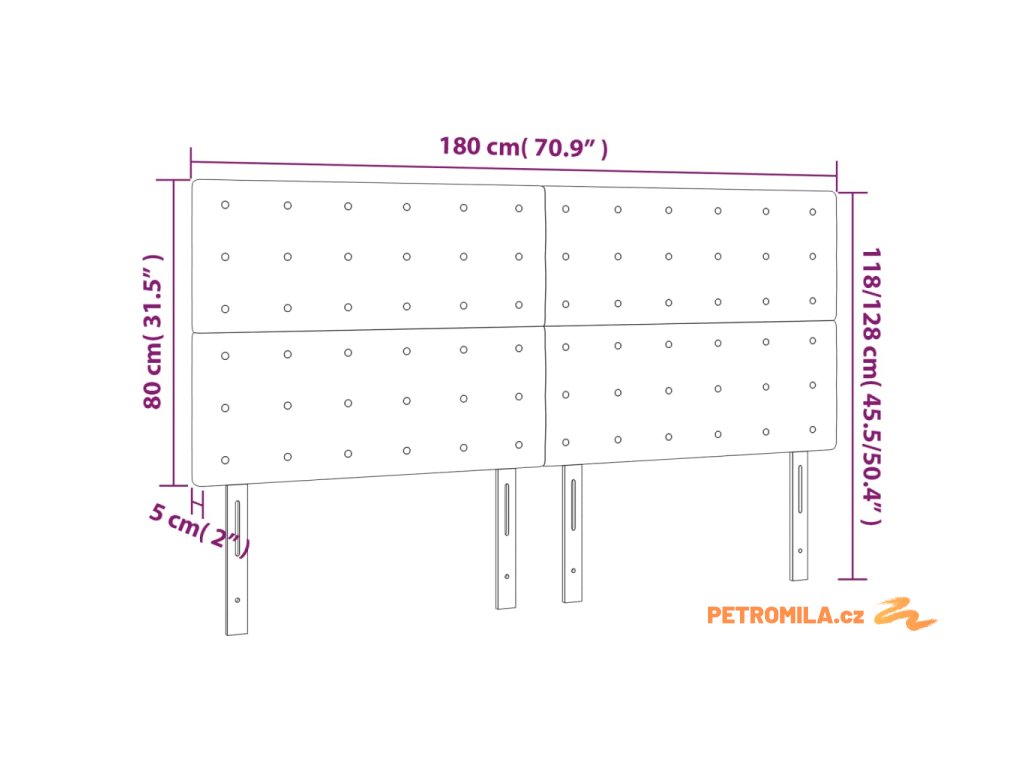 - Celkové rozměry: 180 x 5 x 118/128 cm (Š x H x V)