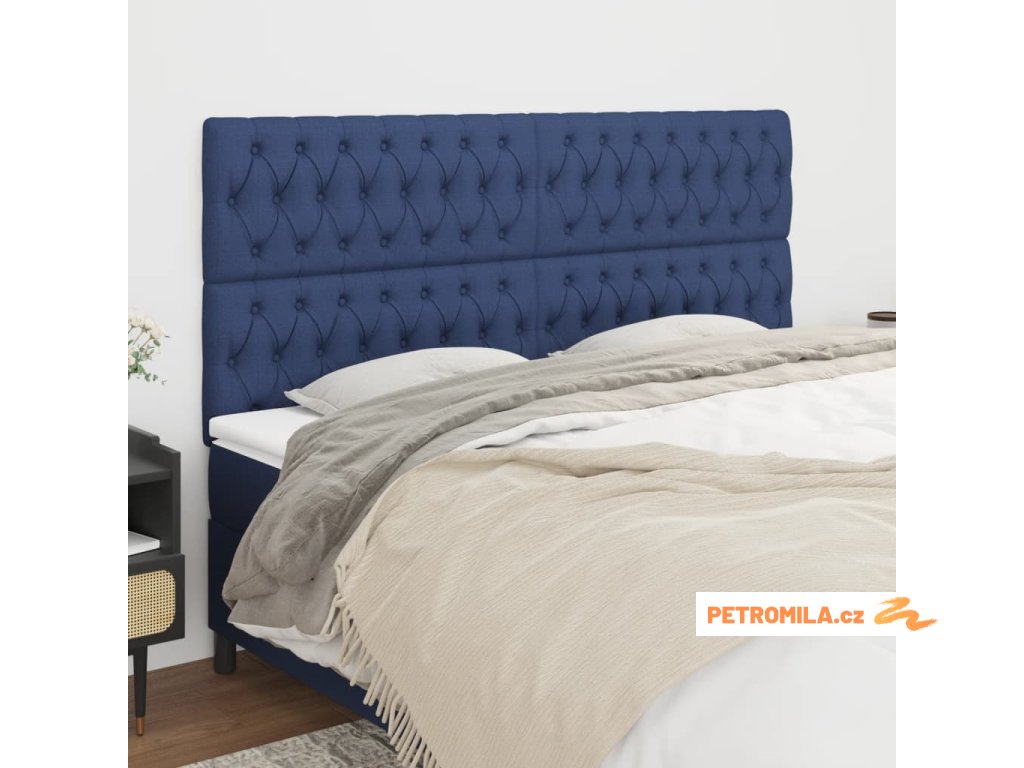 Čelo postele modré 200 x 7 x 118/128 cm látkové