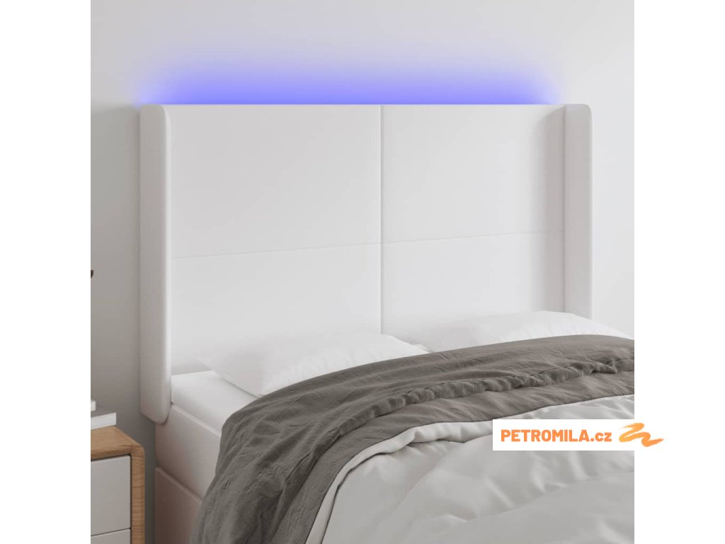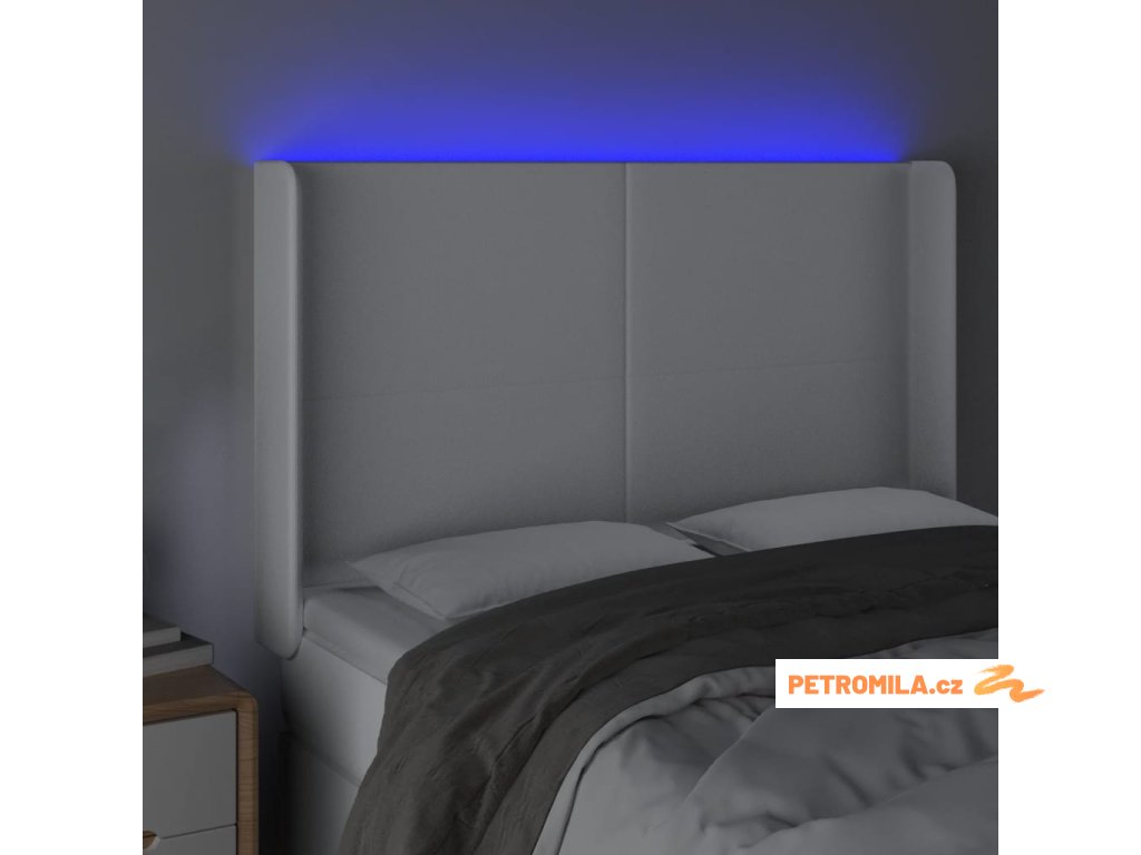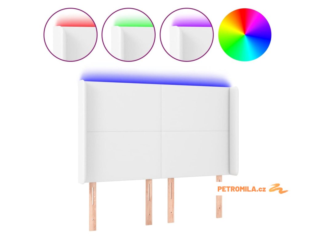 Čelo postele s LED bílé 147 x 16 x 118/128 cm umělá kůže