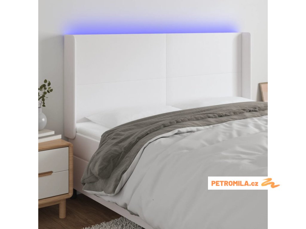 Čelo postele s LED bílé 183 x 16 x 118/128 cm umělá kůže
