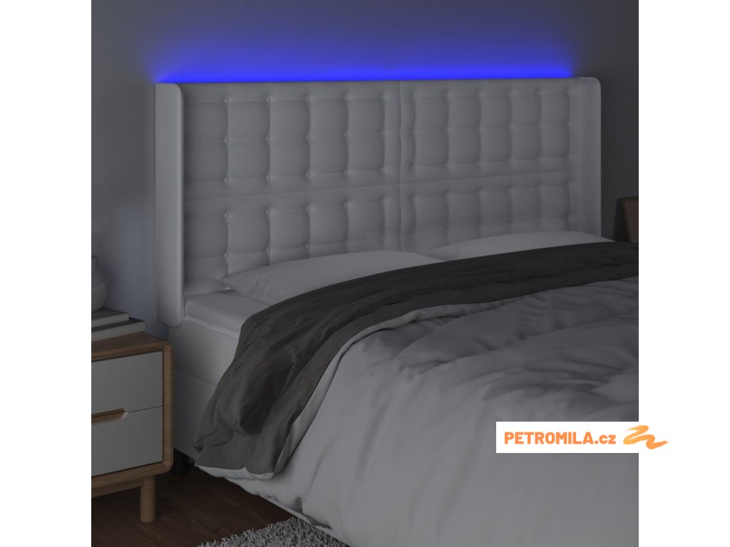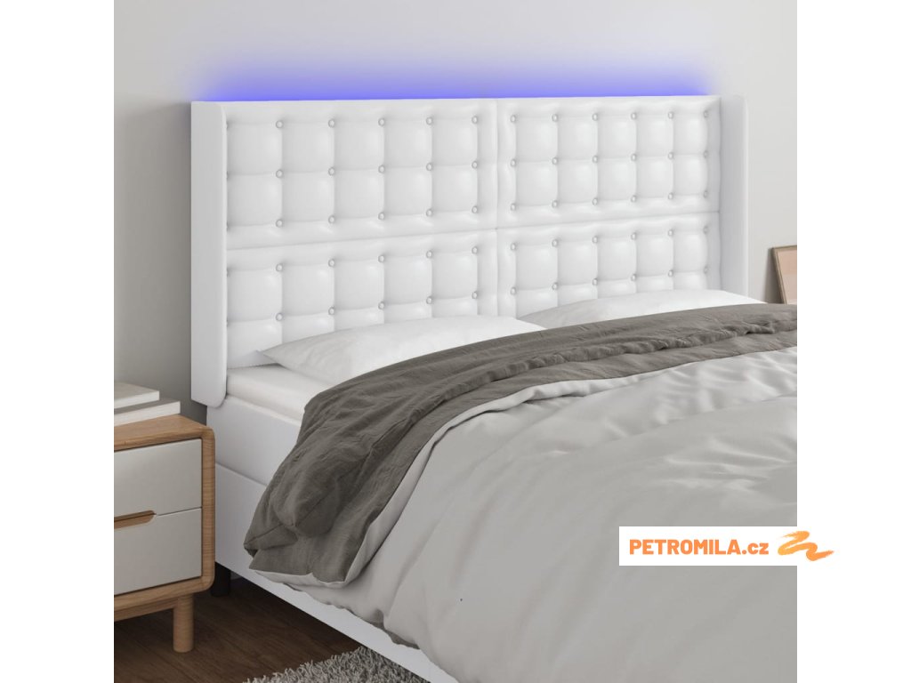 Čelo postele s LED bílé 183 x 16 x 118/128 cm umělá kůže