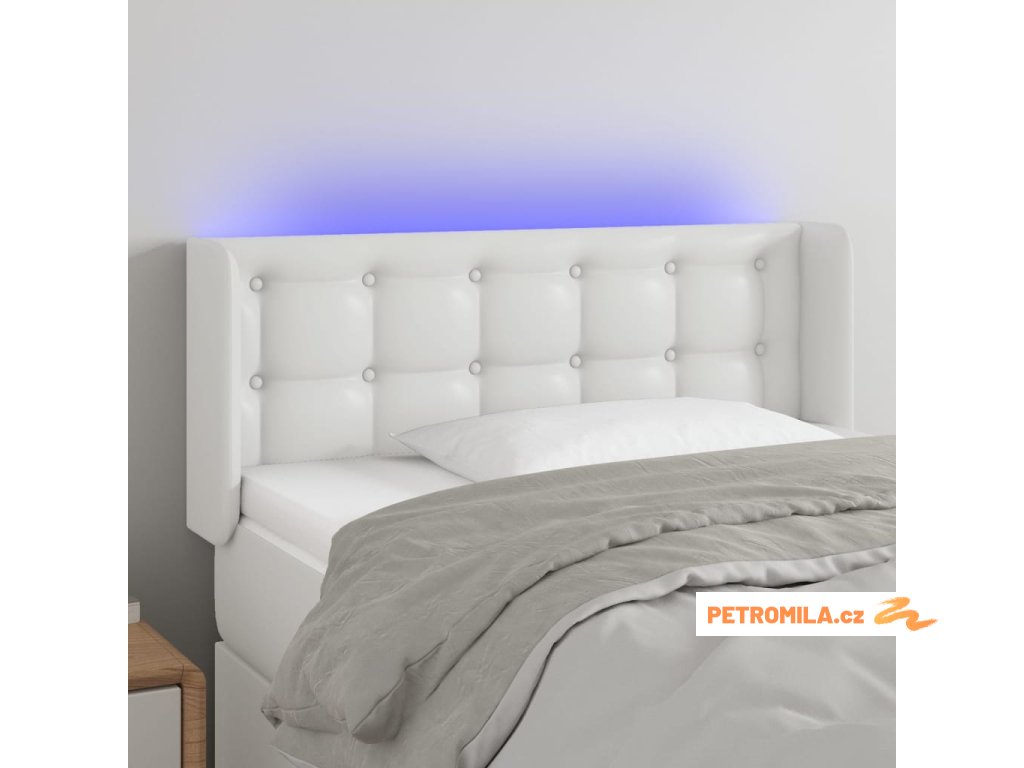 Čelo postele s LED bílé 83 x 16 x 78/88 cm umělá kůže